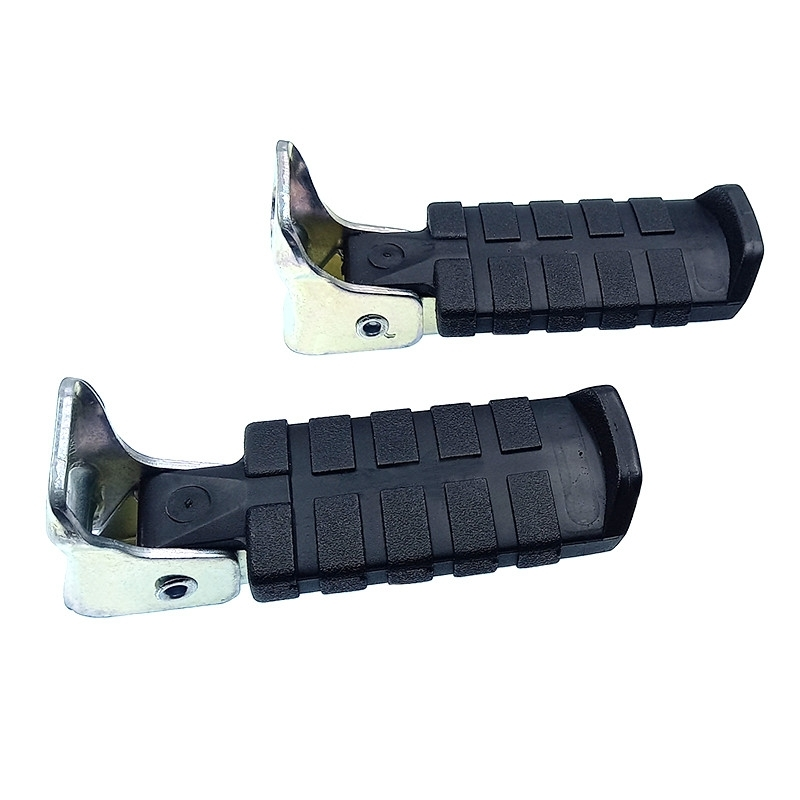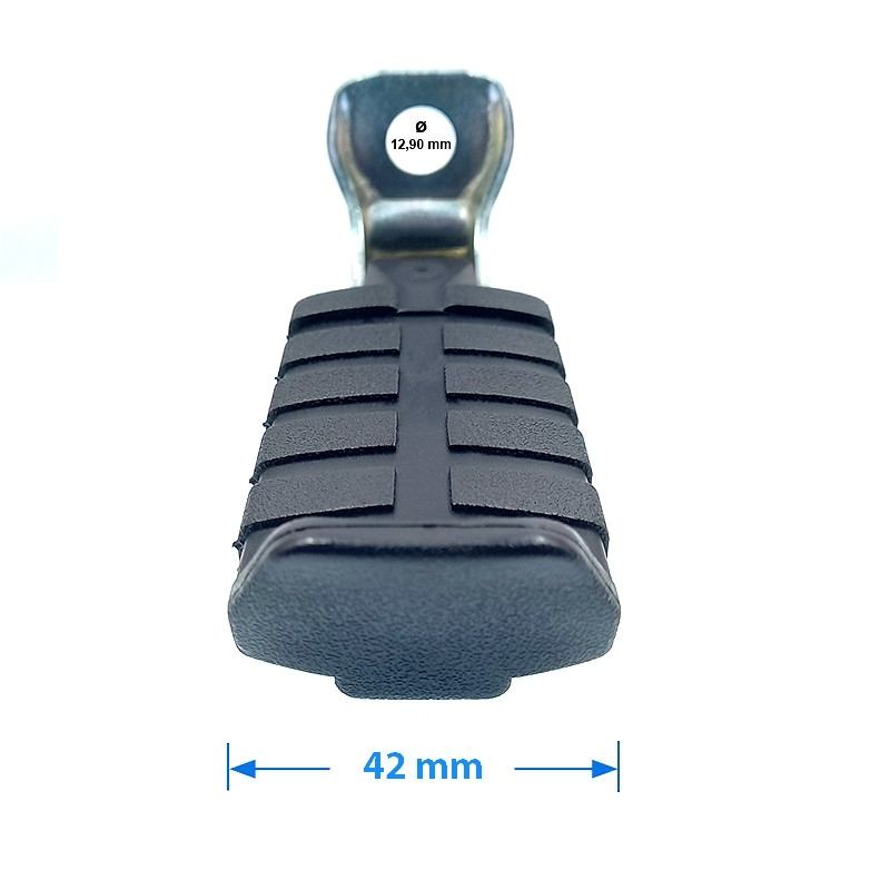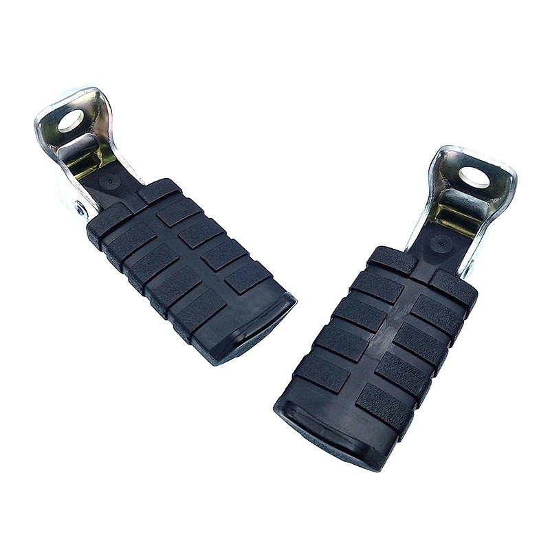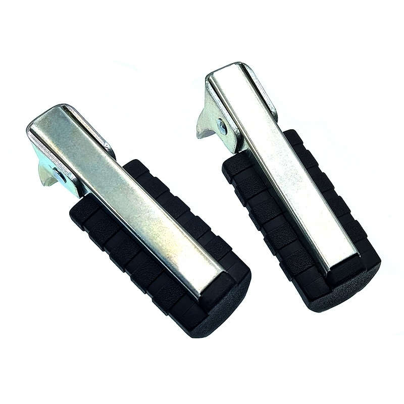 Ces repose-pieds Bobike sont en acier anodisé avec un revêtement en caoutchouc permettant un bonne accroche du pied, ils se montent sur le boulon des axes de roues arrière de vélo et l’axe des amortisseurs arrière des cyclomoteurs.