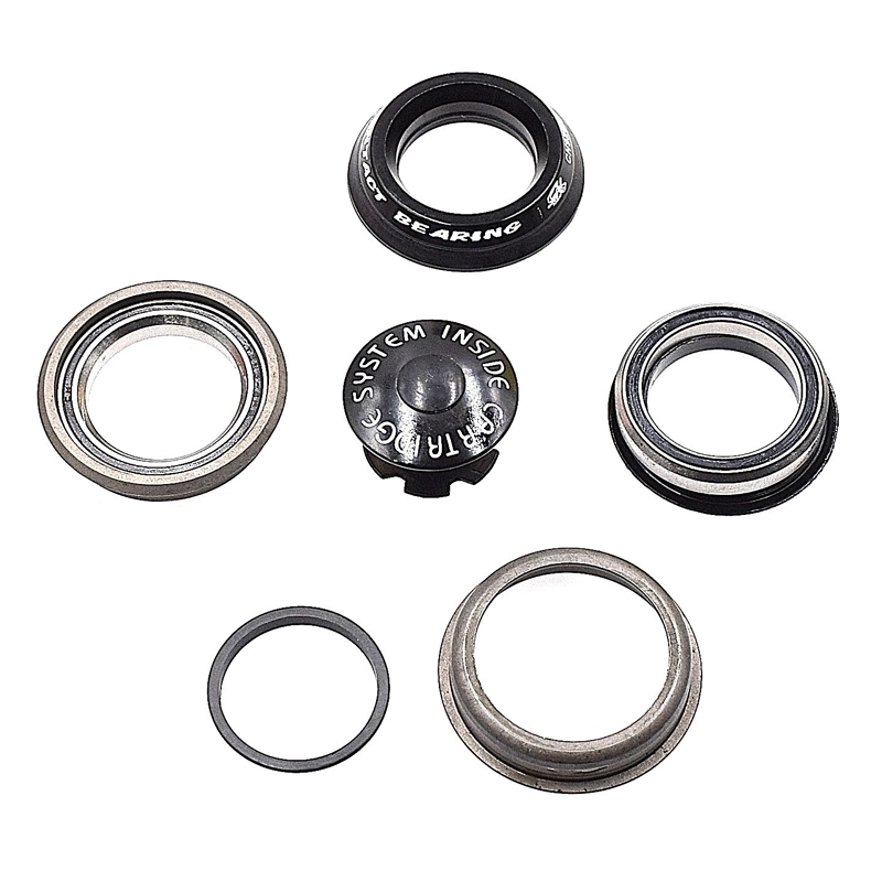 Ce jeu de direction est semi-intégré à la fourche et possède des roulements protégés dans des cartouches protégeant efficacement leurs durées dans le temps et face à l’humidité.