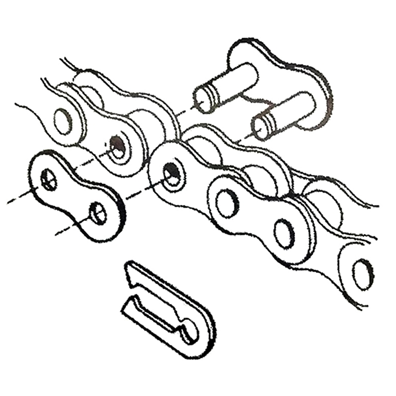 Attache rapide chaine vélo monovitesse constitué de 3 pièces dont 1 maillon, 1 plaquette et 1 clips.