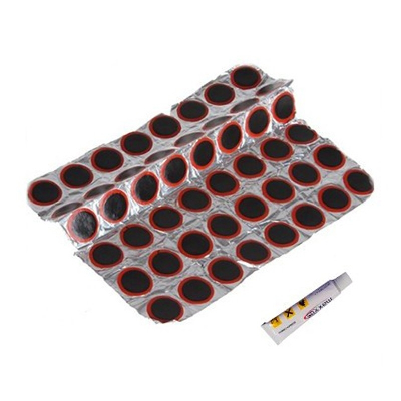 - Inclus dans ce lot : 36 rustines de différentes tailles pour s’adapter à tous les types de pneus de vélo, ainsi qu’un tube de colle spécialement formulé pour une fixation durable.